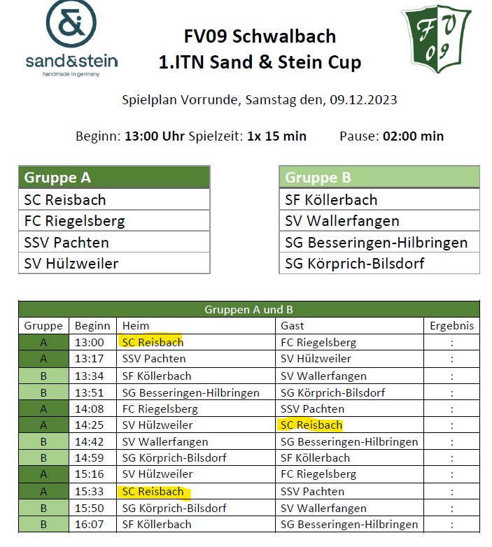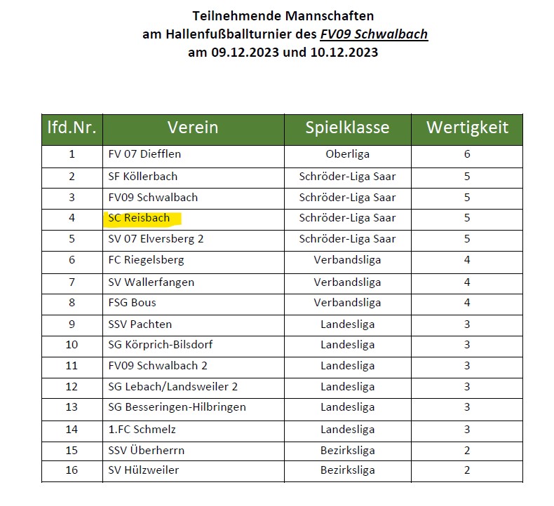 09.12.2023, ab 13:00 Uhr – Jahnsporthalle Schwalbach – Mastersturnier des FV 09 Schwalbach:
